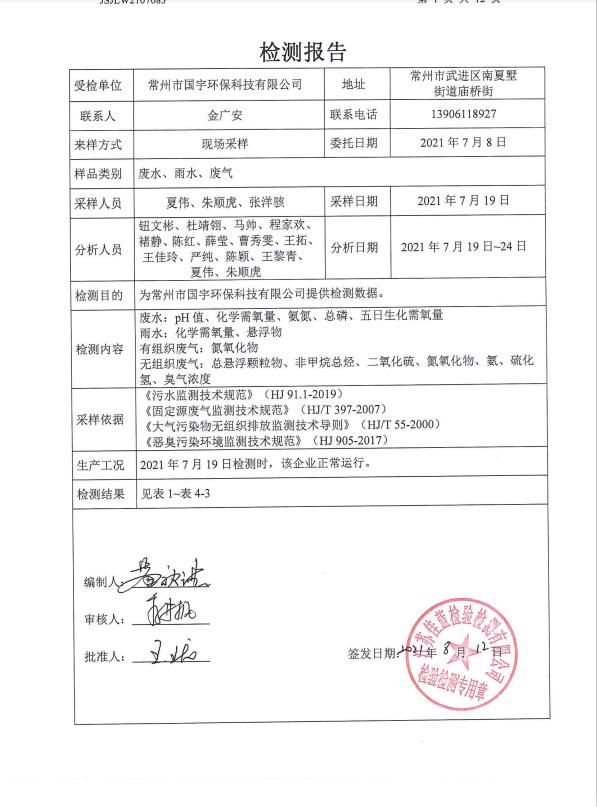 2021年下半年檢測(cè)報(bào)告--廢水、雨水、廢氣